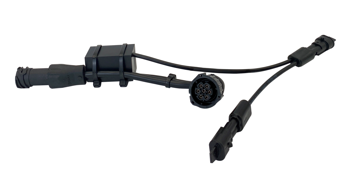 The RLC adapter is connected in front of a tail light or to a rear cable output on a junction box.